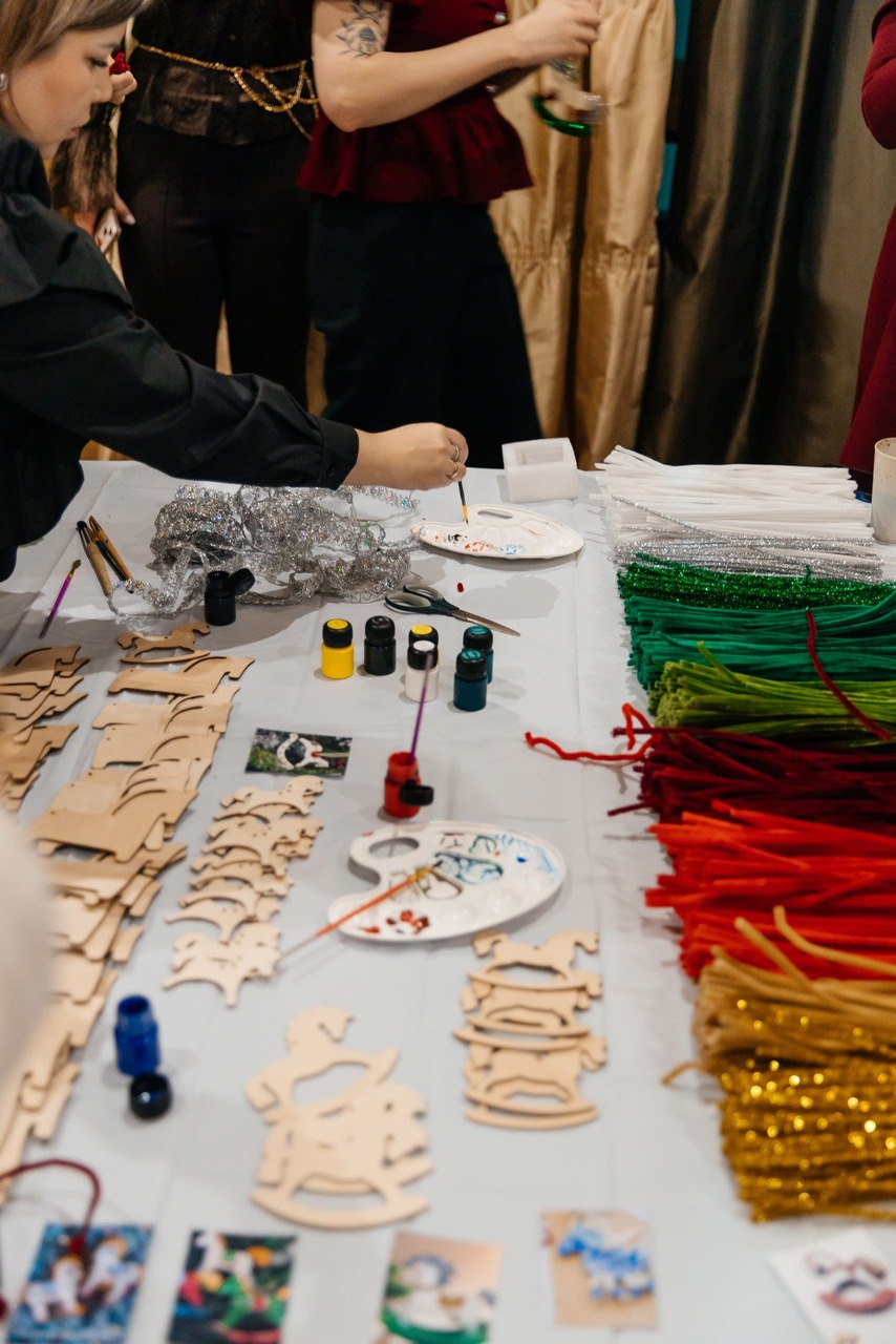 Вечер украсила живая музыка, под которую сотрудники с удовольствием танцевали и веселились. Весёлые конкурсы, тёплая атмосфера и появление Деда Мороза и Снегурочки сделали вечер по-настоящему волшебным. А одним из самых творческих моментов стало изготовление символа 2026 года — лошади, которую каждый сделал своими руками.
