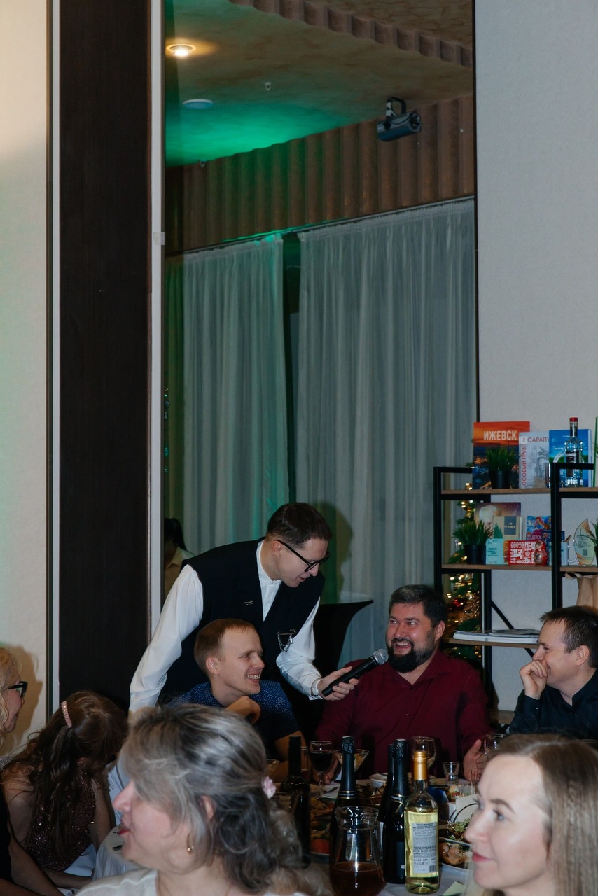 Наш вечер продолжился тёплыми словами директора Дениса Александровича Некрасова. Он подвёл итоги года, отметил достижения сотрудников и вручил заслуженные подарки — такие моменты особенно напоминают, что сила компании в людях.