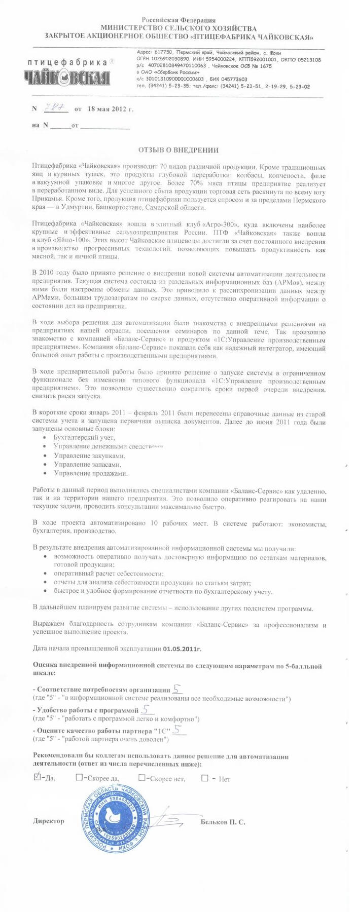 В ходе выбора решения для автоматизации были знакомства с внедренными решениями на предприятиях этой же отрасли, посещения семинаров по данной теме. Так произошло знакомство с компанией «Баланс-Сервис» и продуктом «1С:УПП 8». Компания «Баланс-Сервис» показала себя как надежный интегратор, имеющий большой опыт работы с производственными предприятиями.